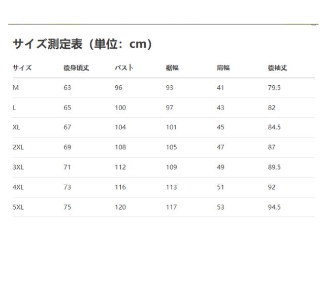 | サイズ | M L XL 2XL 3XL 4XL 5XL |