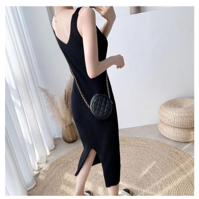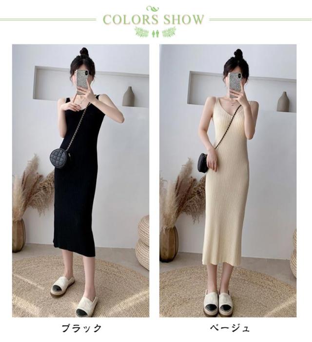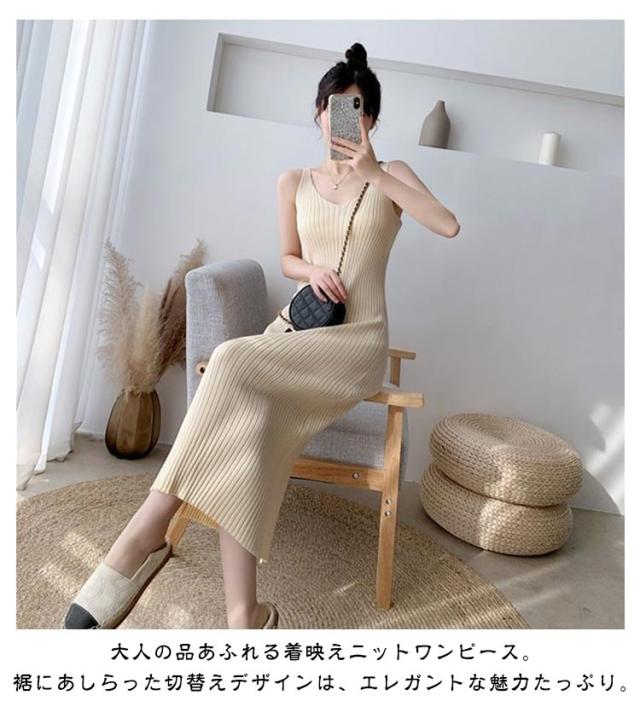 ワンピース レディース 夏 シンプル サマーニット タイト ノースリーブ リブニット Vネック タイトワンピース 接触冷感 シンプル 無地 ワンピース ノースリーブ ニットワンピース ミディアム きれいめ 細身