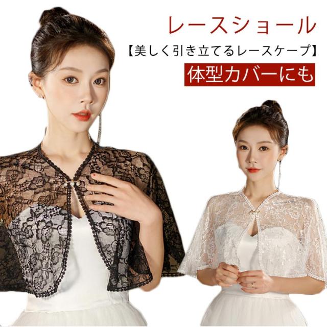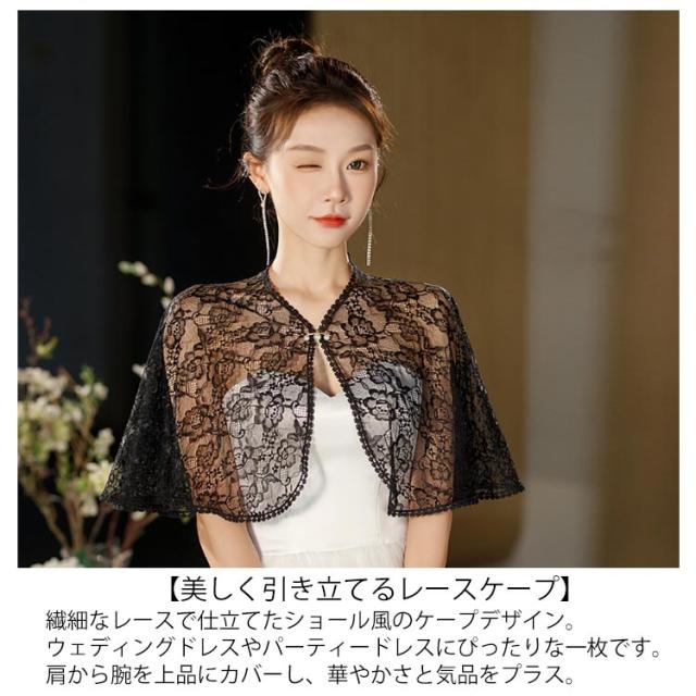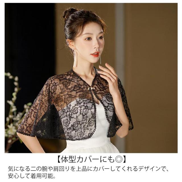 レース ポンチョショール 結婚式 春 夏 ケープボレロ 羽織 カーディガン レース 総レース シースルー フォーマル パーティードレス 秋 披露宴 演奏会 女子会 お呼ばれ 大人 女性 おしゃれ