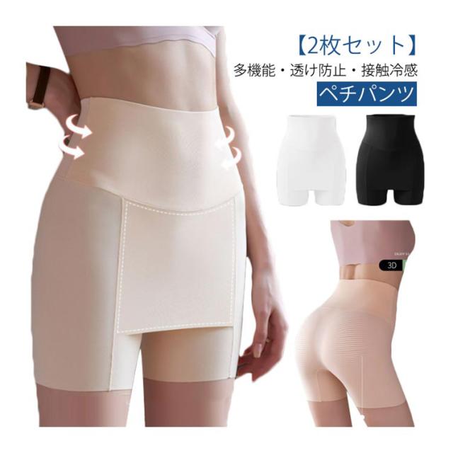 ハイウエスト ハイウエスト ペチコート 透け防止 ペチパンツ 2枚セット Yラインカバー ショーツ インナーパンツ 多機能 無地 無縫製 補正 レディース 下着 吸汗速乾 接触冷感 ひんやり