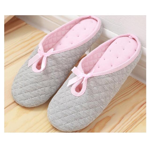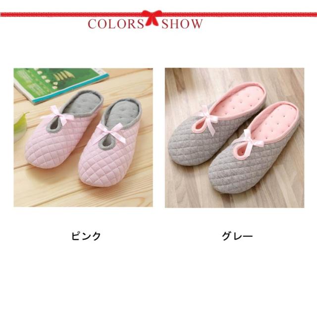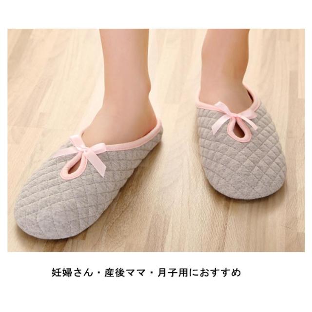 室内用 柔らかい ルームシューズ 妊婦用 コットン 綿布 春夏用 スリッパ 滑り止め リボン付き おしゃれ あったか 春夏用 産前 産後 月子用 室内履き 静音 グレー