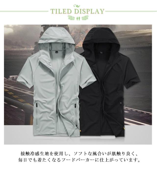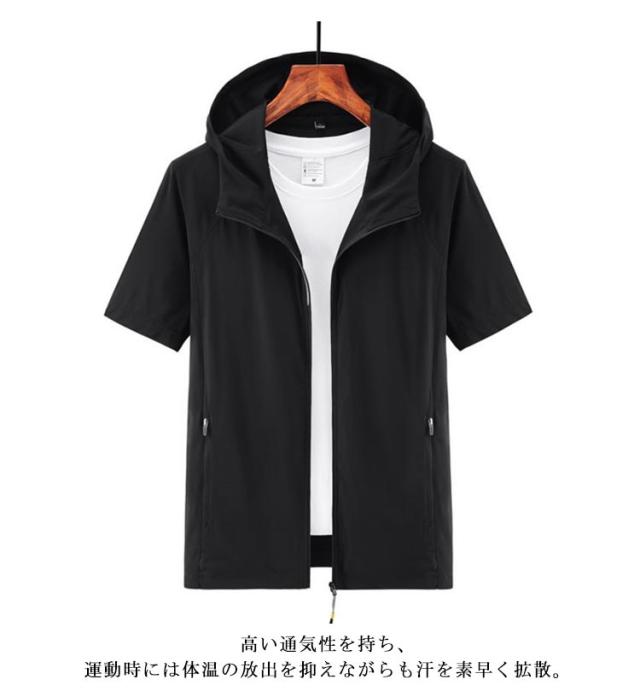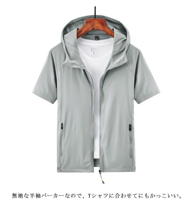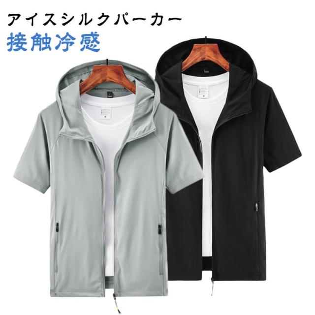 アイスシルクパーカー 無地 大きいサイズ メンズ 接触冷感 夏 ジップアップ フード付き 春 極薄 吸汗速乾 前開き サマージャケット ストレッチ ひんやり 極薄 通気性 アウター ゴルフウェア 半袖パーカー トレニンーグウェア スポーツ 軽量 おしゃれ カジュアル