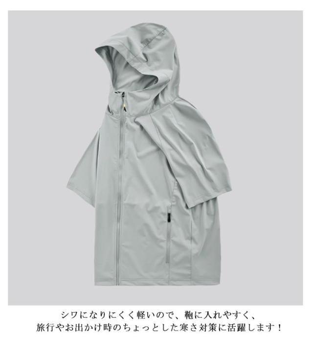 | 接触冷感生地を使用し、ソフトな風合いが肌触り良く、毎日でも着たくなるフードパーカーに仕上がっています。 無地な半袖パーカーなので、Tシャツに合わせてにもかっこいい。 高い通気性を持ち、運動時には体温の放出を抑えながらも汗を素早く拡散。 シワになりにくく軽いので、鞄に入れやすく、旅行やお出かけ時のちょっとした寒さ対策に活躍します! | |