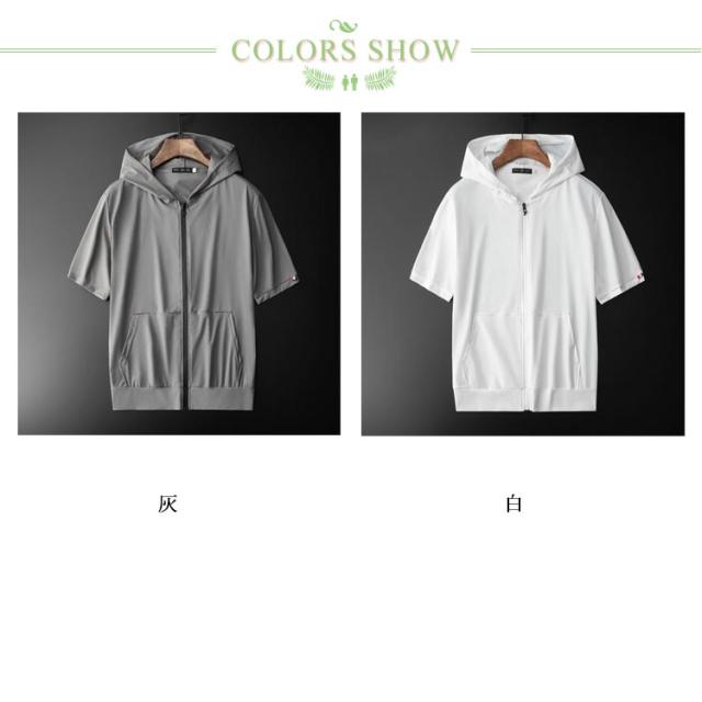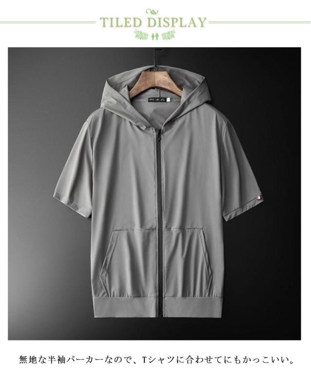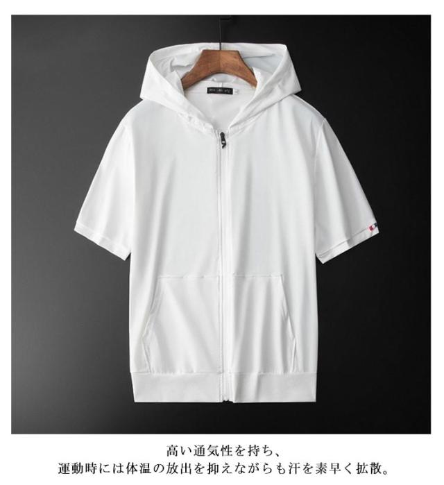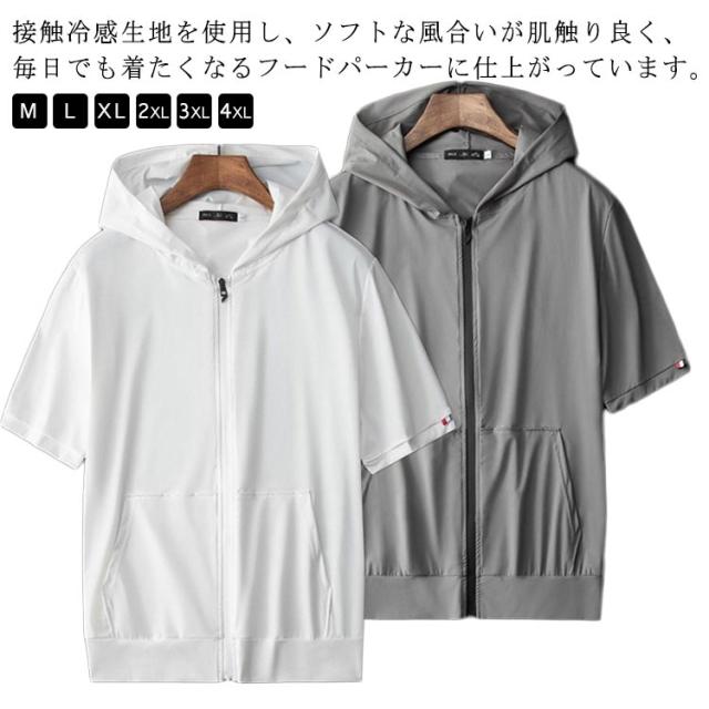 冷感 アイスシルクパーカー 薄手 大きいサイズ ジップアップ 薄手 フード付き 前開き メンズ ひんやり 吸汗速乾 通気性 トレニンーグウェア ストレッチ 春 夏 無地 アウター ゴルフウェア 半袖パーカー サマージャケット スポーツ 軽量 おしゃれ カジュアル