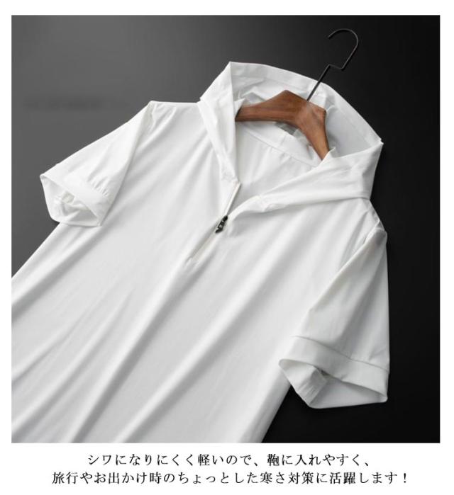 | 接触冷感生地を使用し、ソフトな風合いが肌触り良く、毎日でも着たくなるフードパーカーに仕上がっています。 無地な半袖パーカーなので、Tシャツに合わせてにもかっこいい。 高い通気性を持ち、運動時には体温の放出を抑えながらも汗を素早く拡散。 シワになりにくく軽いので、鞄に入れやすく、旅行やお出かけ時のちょっとした寒さ対策に活躍します! | |