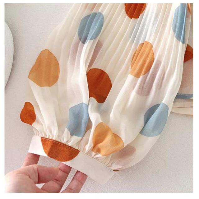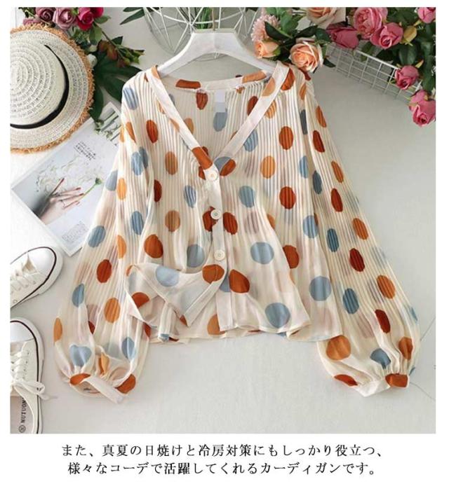 UVカット 羽織 プリーツ 水玉 ドット 薄手 夏 紫外線対策 シフォンシャツ パフスリーブ 冷房対策 シフォンカーディガン アウター 前開き シースルー 透け感 レディース トップス キレイめ 可愛い お洒落 爽やか 日焼け対策 ゆったり カジュアル