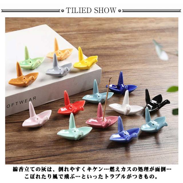 2個セット おしゃれ 墓前 線香立て 千羽鶴 灰不要 線香立 インセンスホルダー 千羽鶴型 線香皿 コンパクト 灰いらず 小型 和風 線香差 線香差し 鶴 香炉 2個セット セラミック 陶器 お香立て 灰がいらない ミニ 線香 お供え 仏壇 仏具 墓参 墓参り 白 黒 カラフル