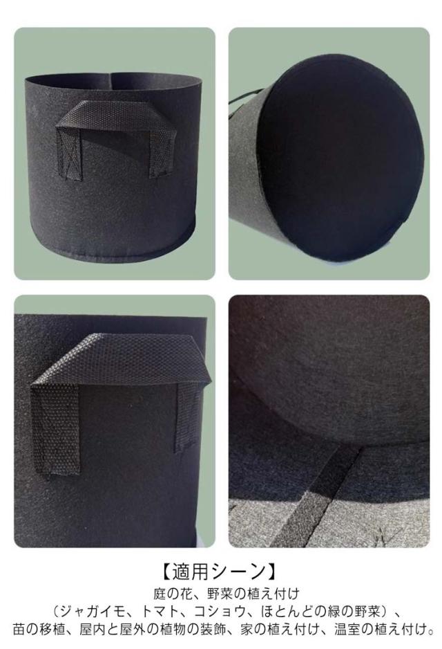 | 20個不織布プランター。 頑丈な持ち手2ヶ所で持ち運びもらくらく! 【通気性・透水性】不織布で作られて、通気性、透水性に優れているので植物の発育に適しています。無公害、環境にやさしく、再利用可能の植え袋です。 【丈夫な持ち手】ハンドルはクロスステッチでしっかりと縫製されるのでより耐久性があり、移動中持ち手が落ちる心配を掛けません。鉢自体もかなり軽量なので、季節の日当たりや、天気に合わせて移動管理が楽です。 【植物の成長環境】植物成長バッグを使用することで、通気性と水はけが良く、より健康で元気に育ちます。不織布の植木鉢は、洗えるし、掃除が簡単で、毎年再利用できます。 【適用シーン】庭の花、野菜の植え付け(ジャガイモ、トマト、コショウ、ほとんどの緑の野菜)、苗の移植、屋内と屋外の植物の装飾、家の植え付け、温室の植え付け。 | |