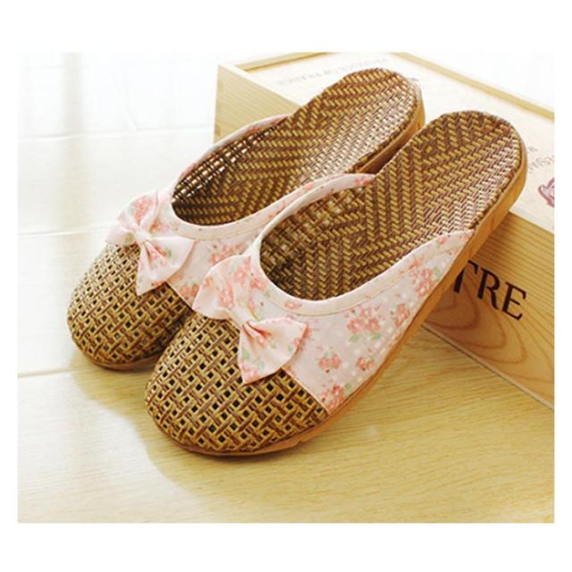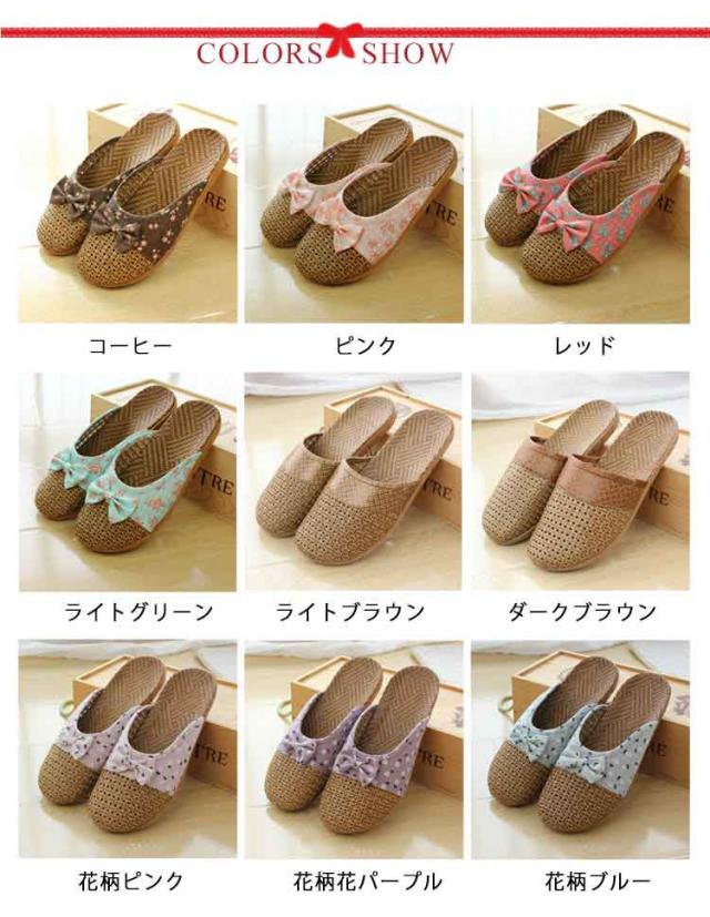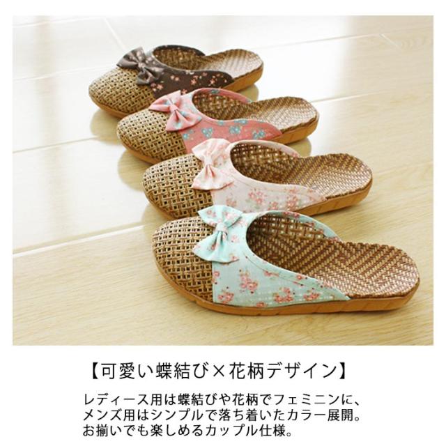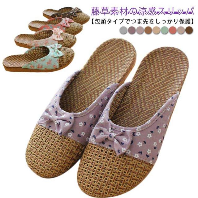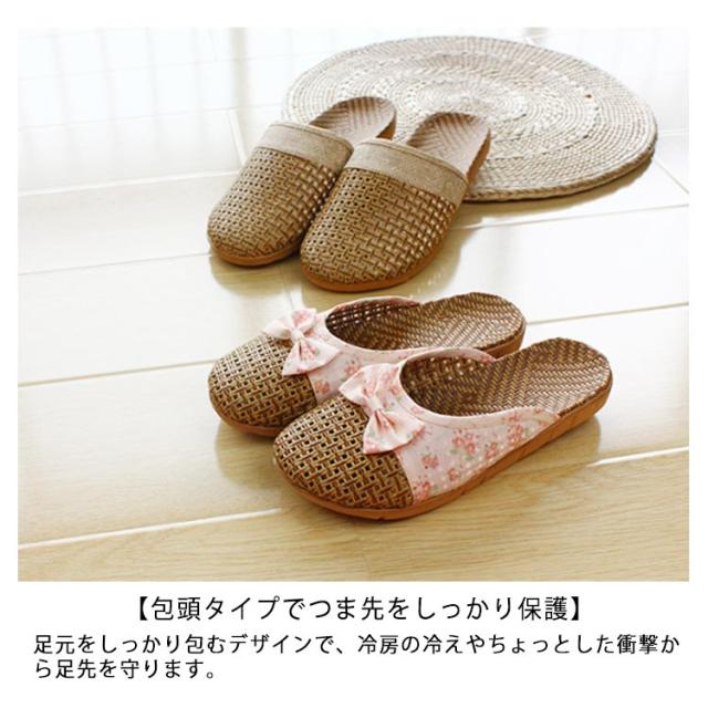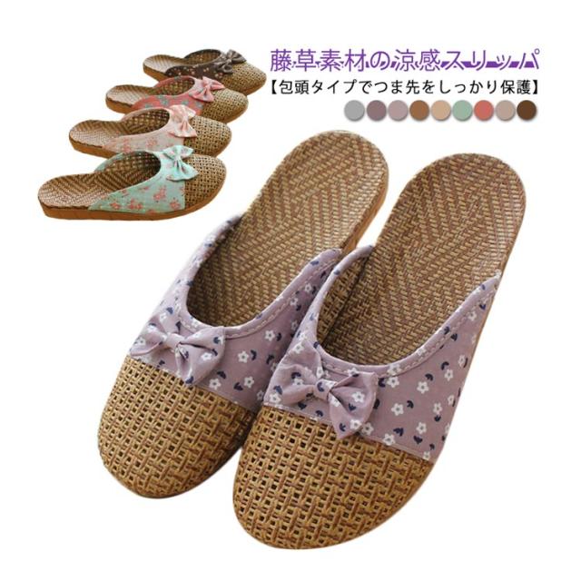 スリッパ 春夏用 ルームシューズ スリッパ 藤草編み 通気性 ナチュラル おしゃれ ルームサンダル 藤草編み 蝶結び付き 花柄 包頭 可愛い 涼感 シンプル 軽量 室内用 カップル用 メンズ