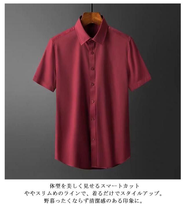 ビジネスカジュアル 無地 シャツ スリムシャツ 半袖 メンズ カジュアルシャツ 薄手 軽量 通気性 通勤 大人カジュアル 男性用 オフィスカジュアル 夏用 シャツ シンプル おしゃれ 体型カバー
