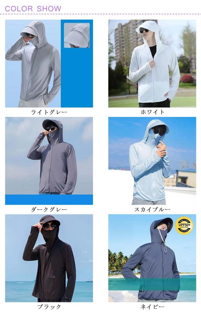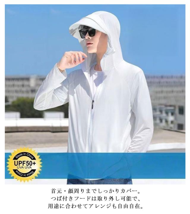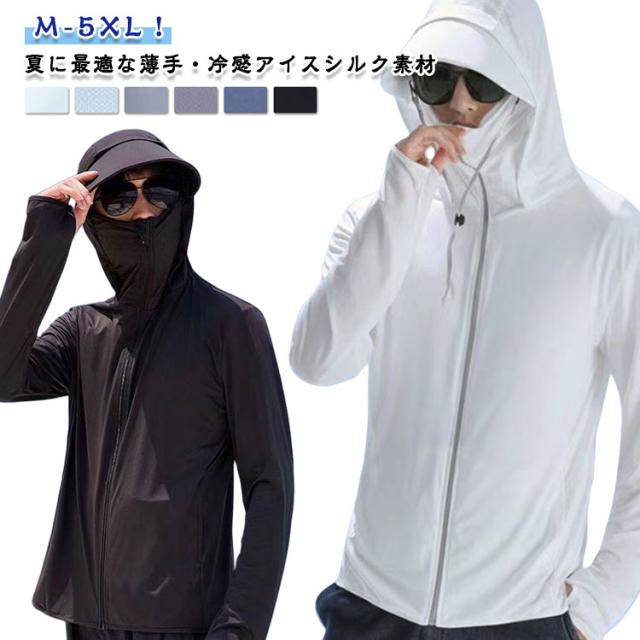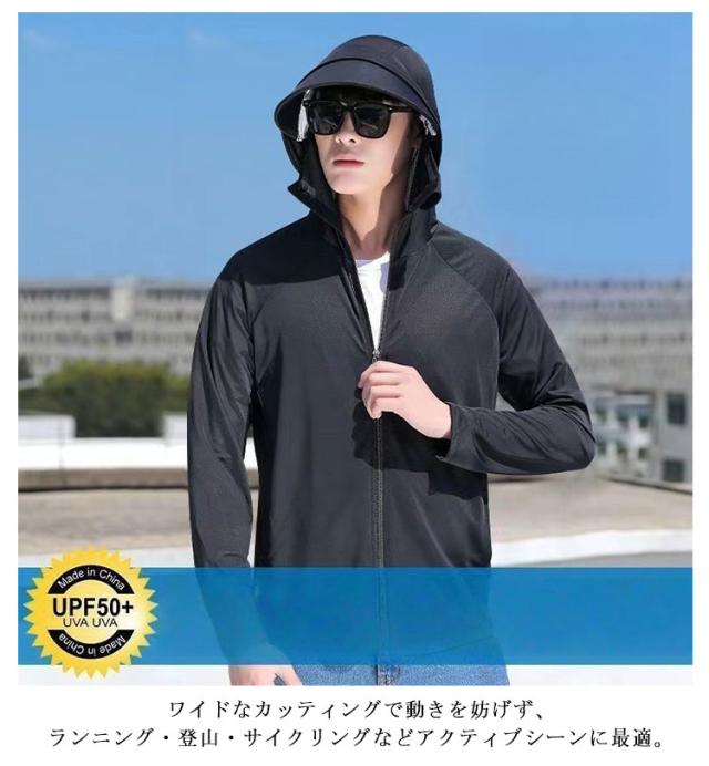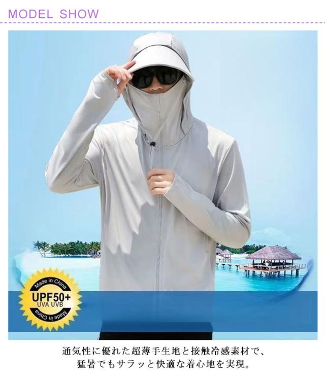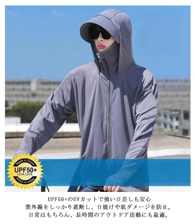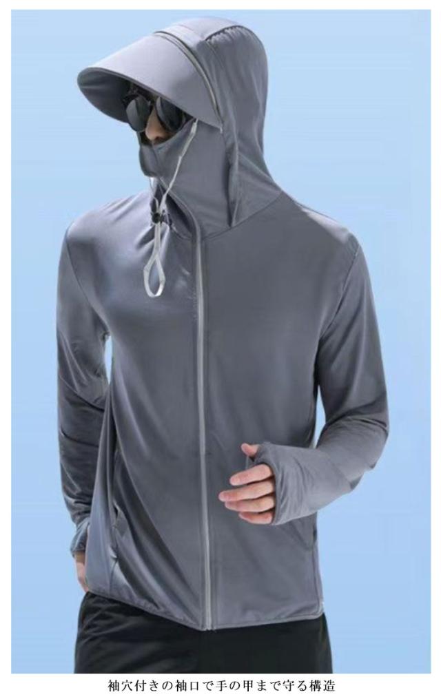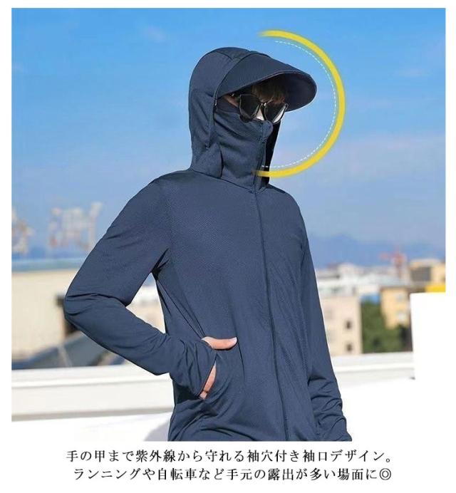 夏用 UVパーカー UVパーカー 冷感パーカー 紫外線対策 フード付き メンズ サイクリング 接触冷感 ランニング ジャケット スポーツ アウトドア 春夏 日焼け止め 袖穴付 日焼け防止 長袖 薄手 涼感 UPF50+