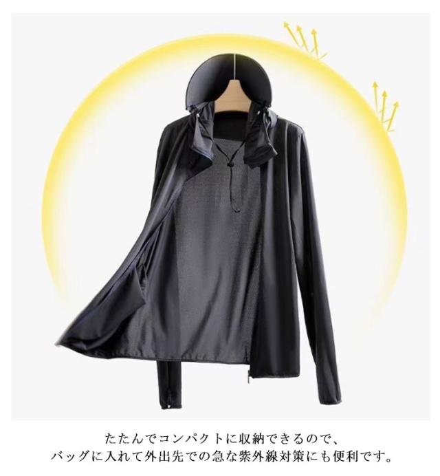 | 夏に最適な薄手・冷感アイスシルク素材 袖穴付きの袖口で手の甲まで守る構造 通気性に優れた超薄手生地と接触冷感素材で、猛暑でもサラッと快適な着心地を実現。 UPF50+のUVカットで強い日差しも安心 紫外線をしっかり遮断し、日焼けや肌ダメージを防止。日常はもちろん、長時間のアウトドア活動にも最適。 首元・顔周りまでしっかりカバー。つば付きフードは取り外し可能で、用途に合わせてアレンジも自由自在。 手の甲まで紫外線から守れる袖穴付き袖口デザイン。ランニングや自転車など手元の露出が多い場面に◎ ワイドなカッティングで動きを妨げず、ランニング・登山・サイクリングなどアクティブシーンに最適。 たたんでコンパクトに収納できるので、バッグに入れて外出先での急な紫外線対策にも便利です。 | |