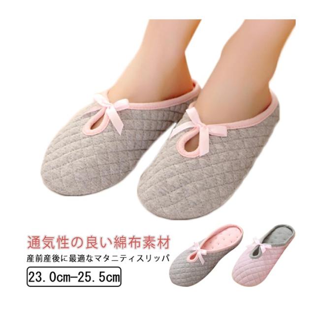 綿布 柔らかい あったか 春夏用 月子用 室内用 ルームシューズ スリッパ 妊婦用 リボン付き おしゃれ コットン 滑り止め 産前 産後 春夏用 室内履き 静音 グレー