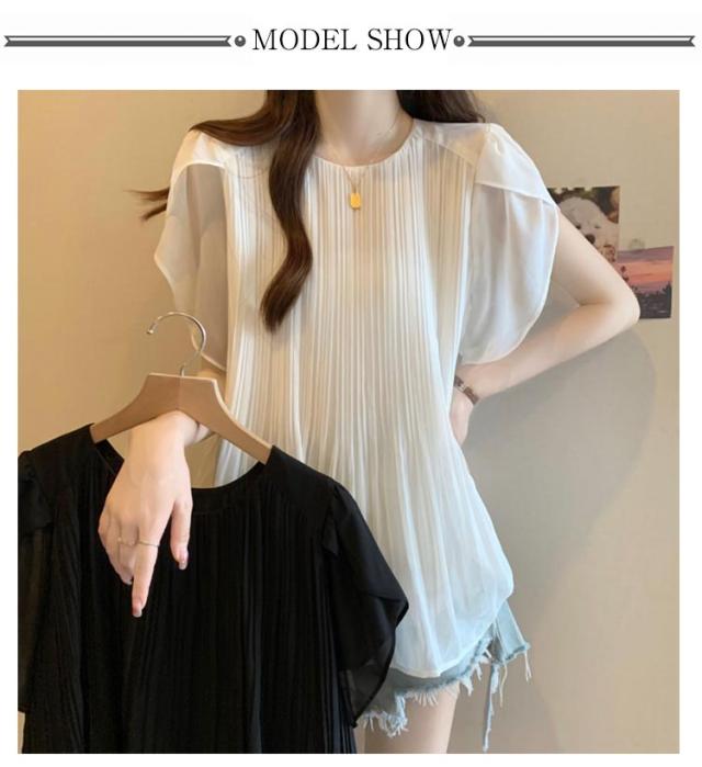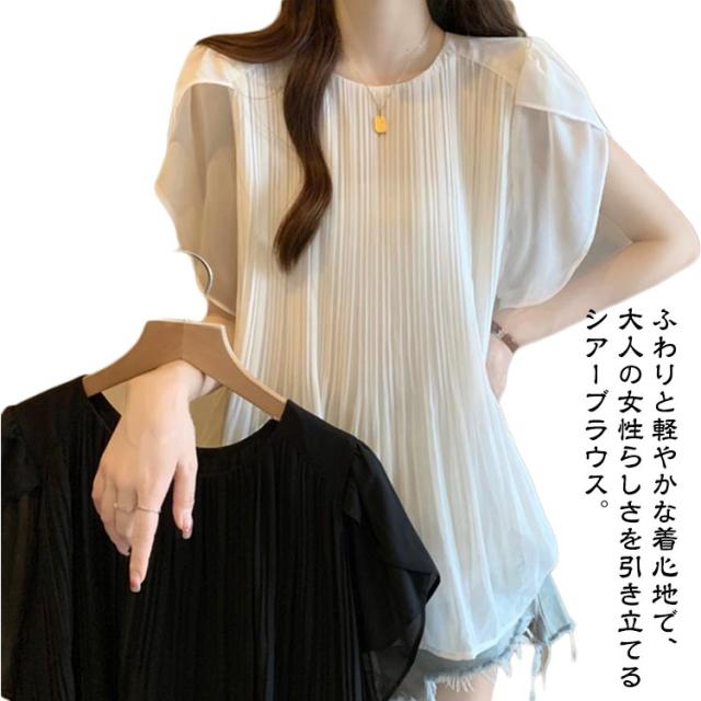 夏 ブラウス ゆったり 無地 ブラウス フレアブラウス 半袖 フレンチスリーブ 薄手 レディース 半袖ブラウス トップス フレア袖 半袖トップス Aライン シフォン 透け感 シアーブラウス 体型カバー シンプル きれいめ おしゃれ フェミニン エレガント 夏物 白 黒