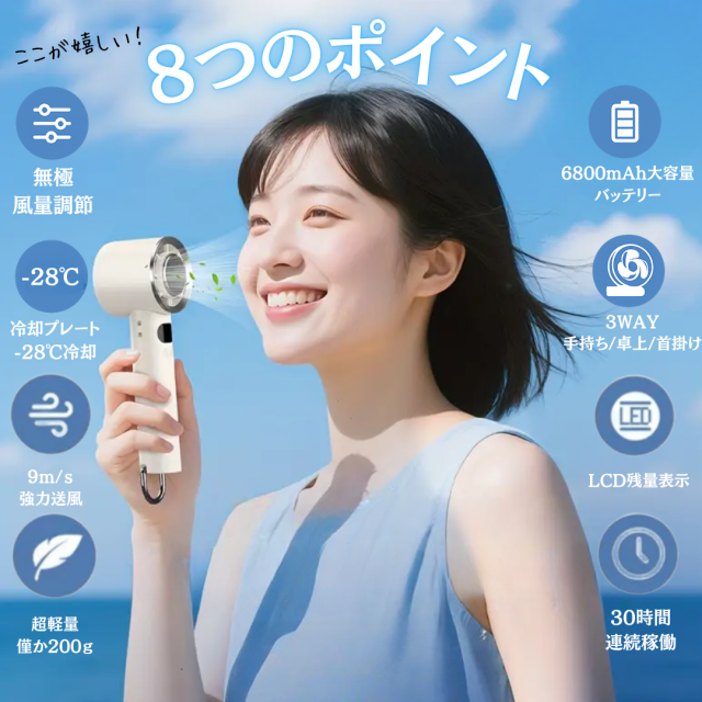 外出先でも手軽にクールダウンできる、暑い季節に欠かせない多機能ハンディファンです。
