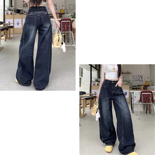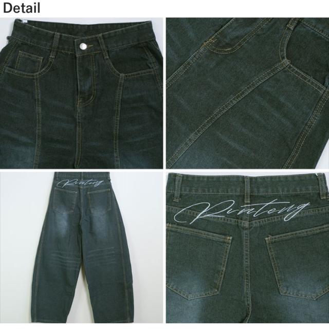 全品送料無料一部除く バックロゴ刺繍 ワイドシルエット カーブデニムパンツ【即納】ボトムス パンツ デニムパン ハイウエスト ルーズシルエット ロゴ刺繍 高身長 メンズライク インディゴブルー レディース 韓国 Y2Kファッション 韓国ストリート 流行り トレンド かわいい