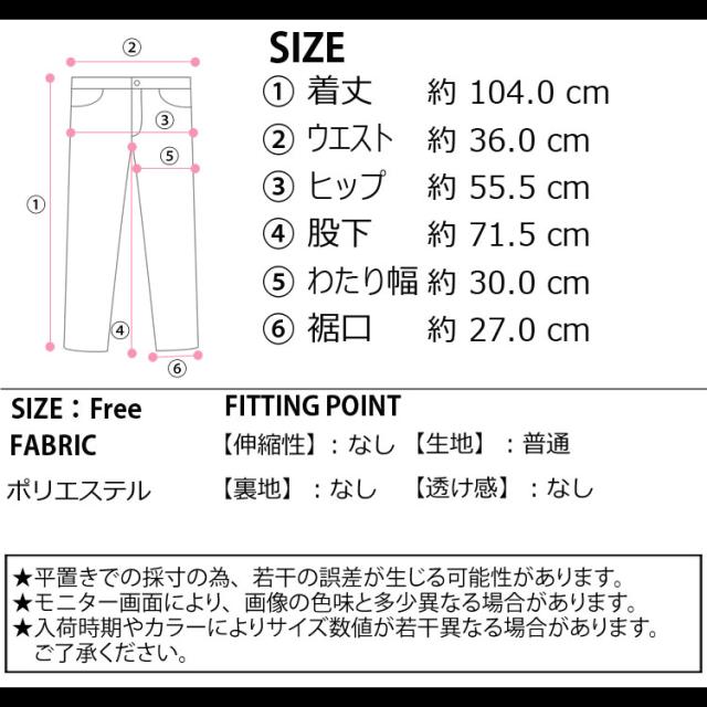 ■サイズ:着丈104cm ウエスト36cm ヒップ55.5cm 股下71.5cm わたり幅30cm 裾口27cm