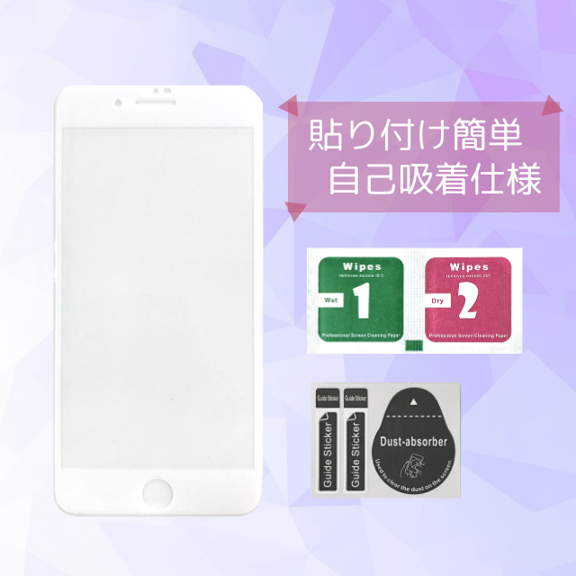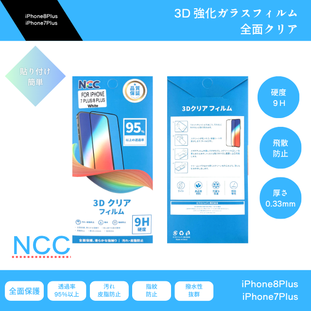 ガラスフィルム 3D全面クリア 保護フィルム NCC iPhone8Plus用 iPhone7Plus用 白 強化ガラス 硬度9H 飛散防止 自己吸着 全面保護 透過率 透明