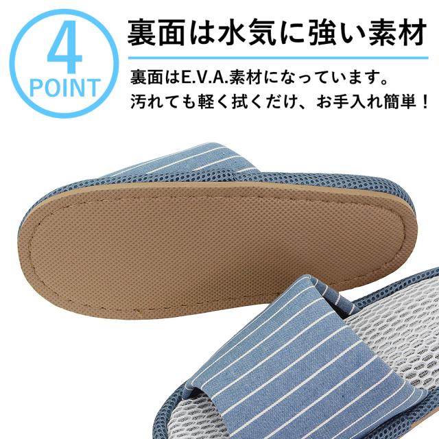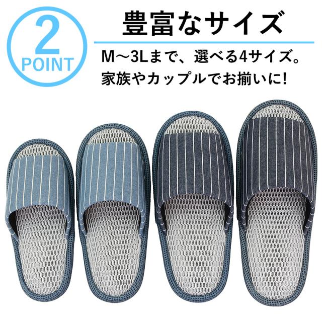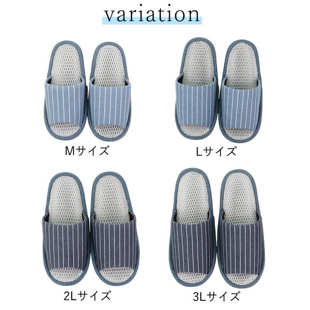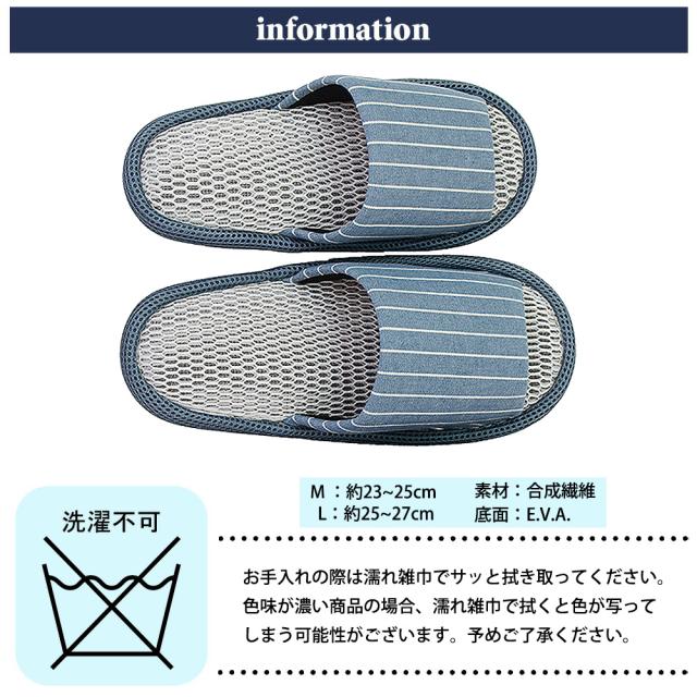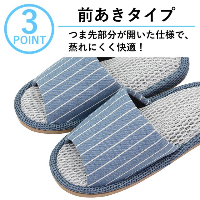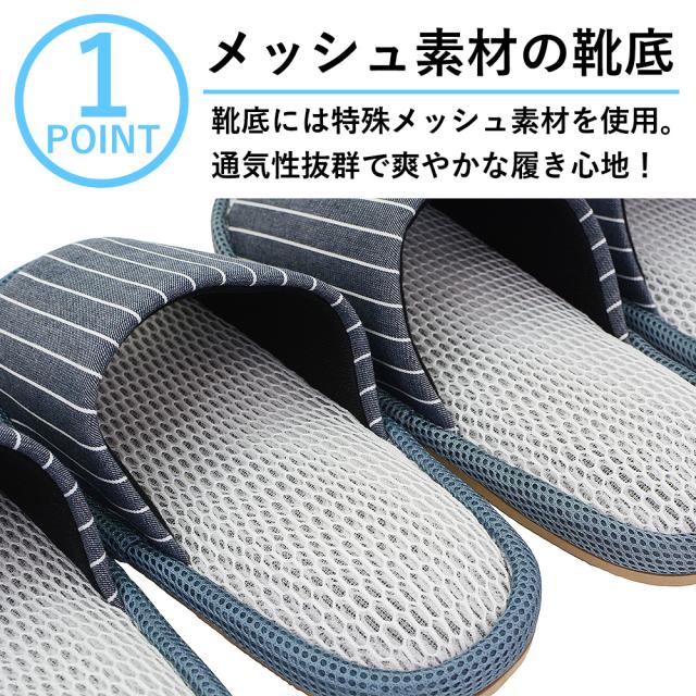 メッシュスリッパ Mサイズ Lサイズ 小さめ レディース メンズ おしゃれ ストライプ 夏用 春夏 室内 前開き 来客用 スリッパ さらっと快適 メッシュ 涼しい 蒸れない さらさら オールシーズ ルームシューズ