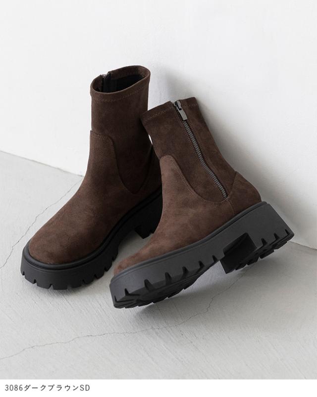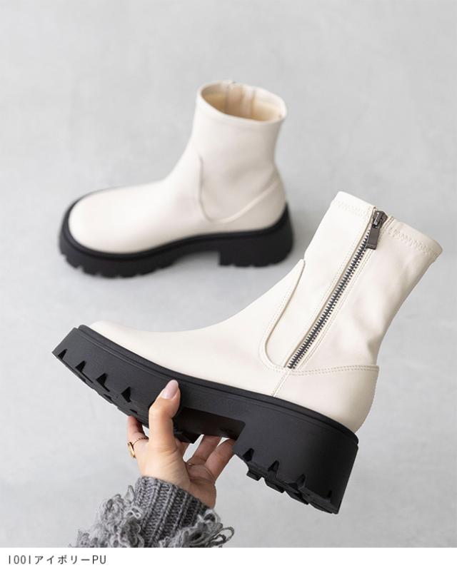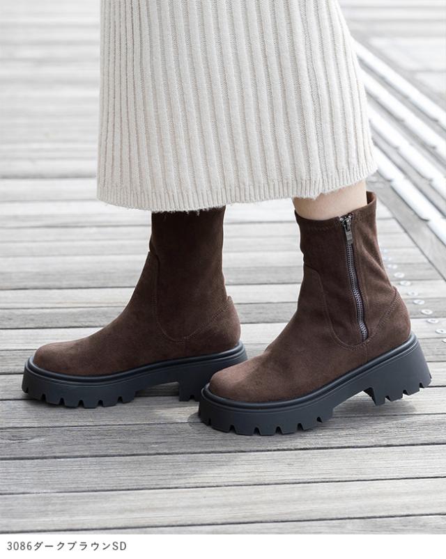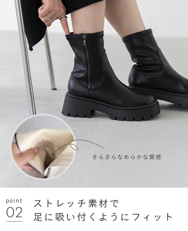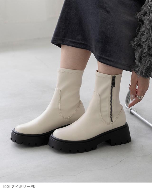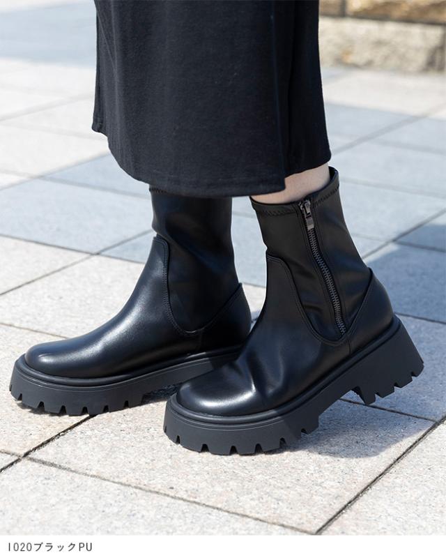 ショートブーツ レディース ストレッチ ストレッチブーツ 厚底ブーツ 痛くない 歩きやすい ラウンドトゥ 袴 着物 送料無料