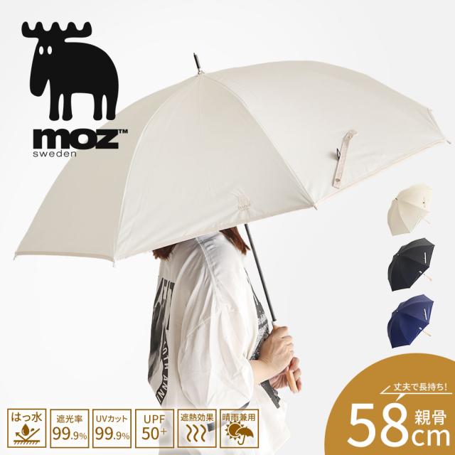 moz 傘 レディース 晴雨兼用 1級遮光 58cm 遮光率100% UVカット UPF50+ 遮熱効果 紫外線対策 長傘 日傘 小さめ レイングッズ 雨具 手開き式 梅雨 アンブレラ ロゴ ワンポイント かわいい 可愛い おしゃれ お洒落 雨傘 黒 白 ブラック オフホワイト ネイビー モズ 554835