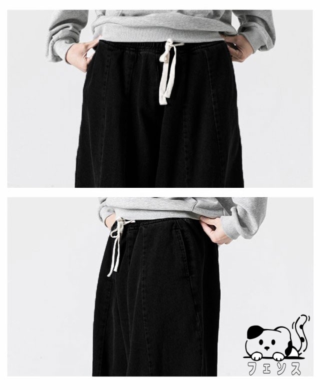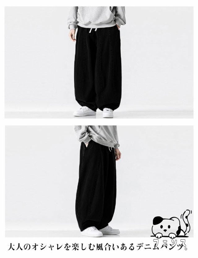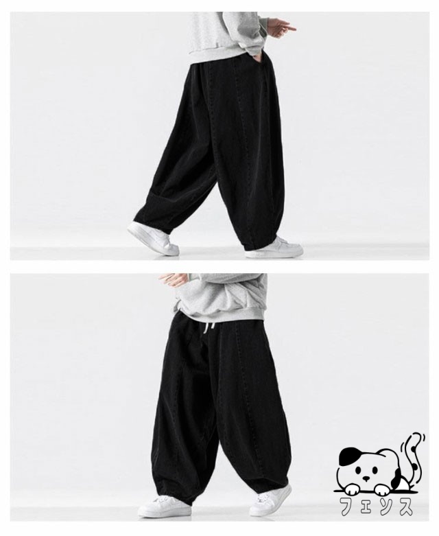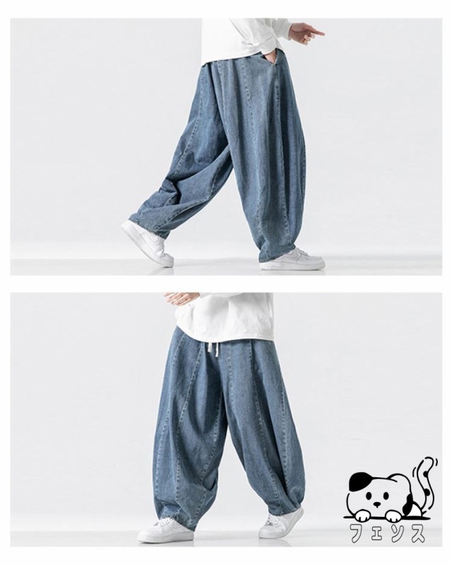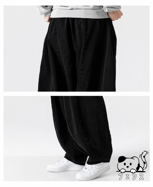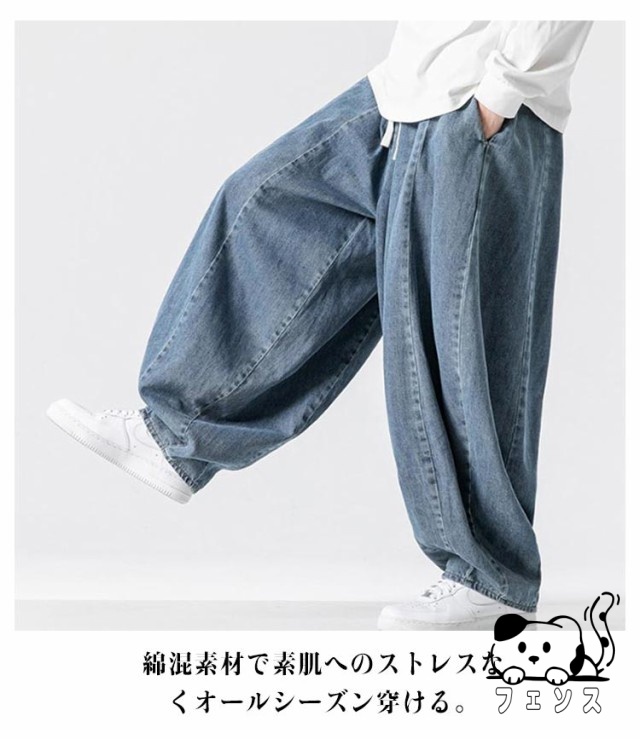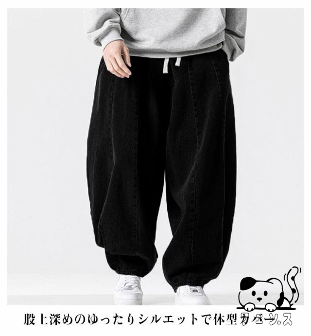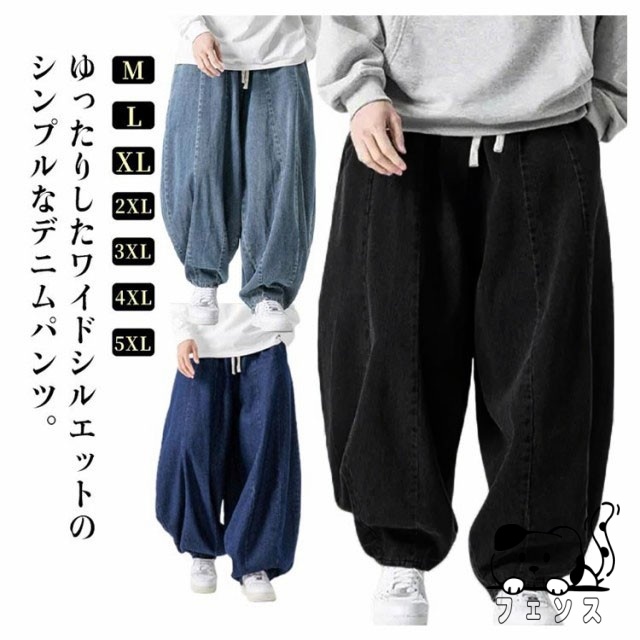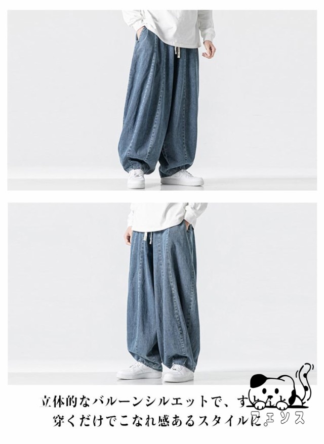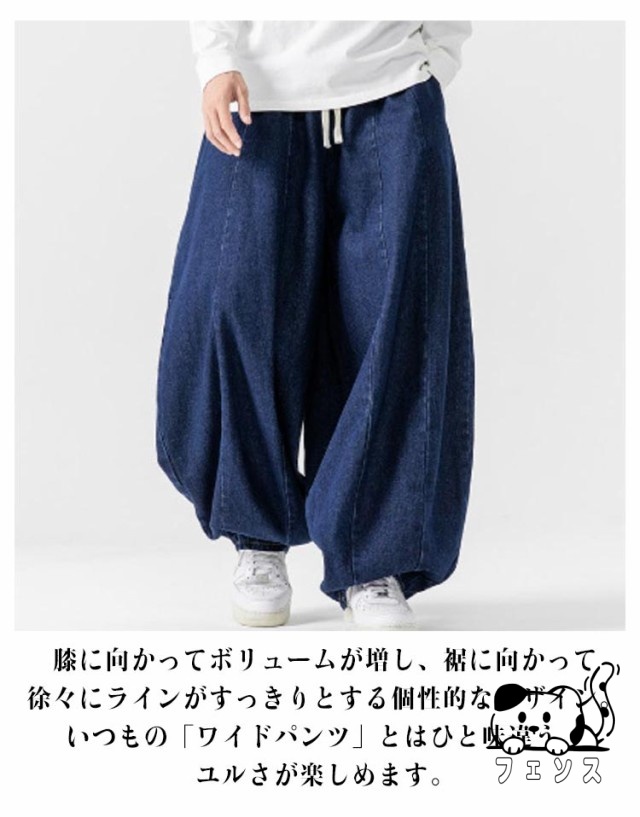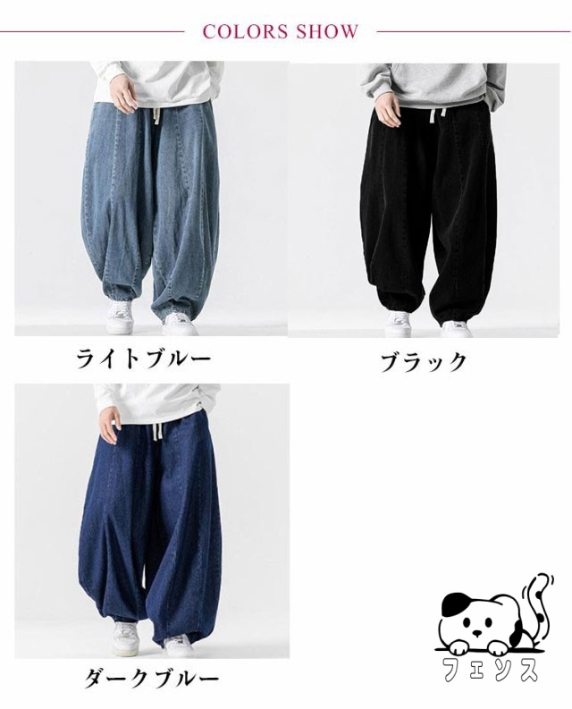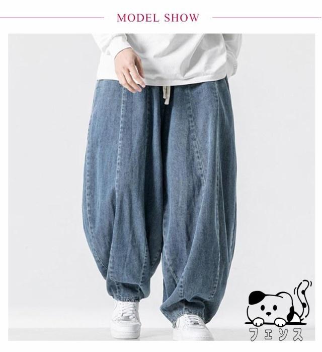 デニム サルエルパンツ メンズ パンツ デニムパンツ ワイドパンツ 春 夏 秋 デニムサルエル ゆったり ルーズ ワイド ジーパン ジーンズ 袴パンツ イージーパンツ Gパン 大きいサイズ ポケット付き 黒 ブルー ストリート カジュアル バルーンパンツ 【送料無料】