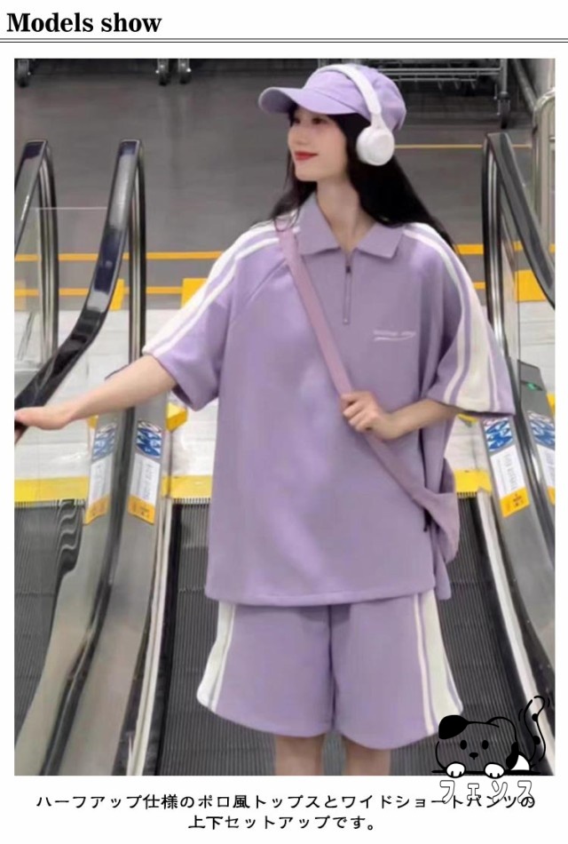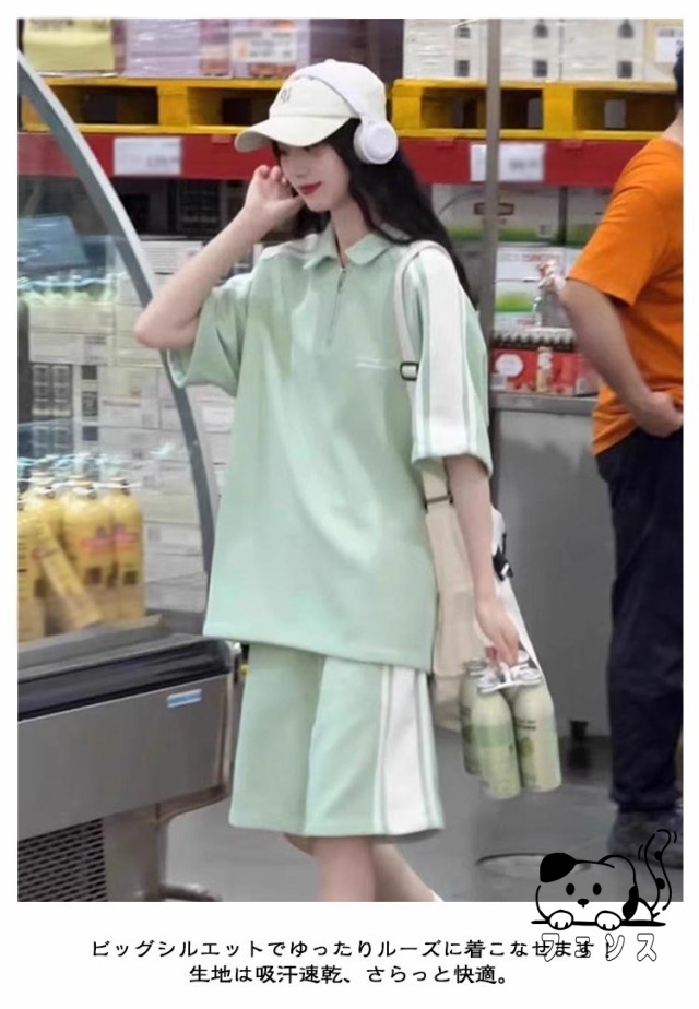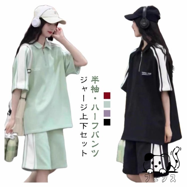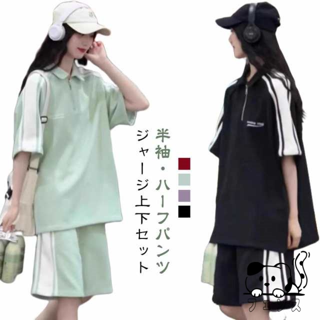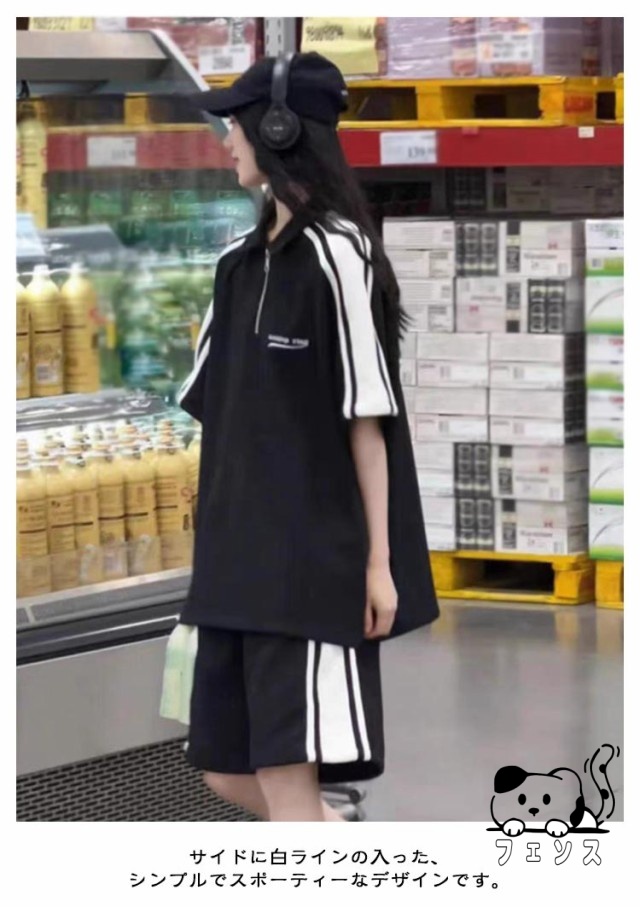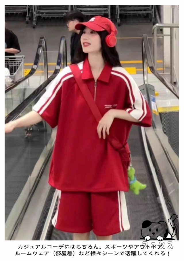 ジャージ 上下セット レディース 春夏 半袖 ショートパンツ 2点セット 夏 スポーツウェア 部屋着 運動 部活 ダンス ビッグシルエット サイドライン オーバーサイズ 大きいサイズ カジュアル 原宿系 ストリート 送料無料