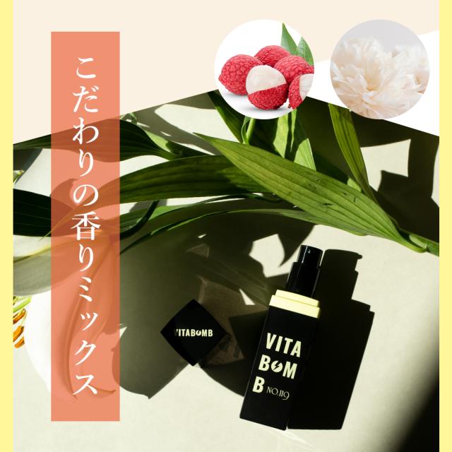 開発期間5年をかけて肌の透明感と保護効果を高める革新的美容液が遂に完成!20%高濃度ビタミンC配合の”ビタミン爆弾” ビタボムの特徴 特徴1・高濃度ミックスビタミンC配合 20%の高濃度ミックスビタミンCを安定配合に成功 即効性、持続性、浸透型など5つのビタミンCを働きにより5年かけてたどり着いた黄金比。 安定的にアプローチする様にパウダー状にして疑似バリア膜に練り込み、ミックス配合をさせたオリジナルの特別処方。 ミックスビタミンC・・・ 1・生ビタミンC 2・即効型ビタミンC 3・48時間持続型ビタミンC 4・安定型ビタミンC 5・浸透型ビタミンC 香りの特徴 トップノート / ピオニー、ライチ、フリージア ミドルノート / ローズ ラストノート / マグノリア、リリーオブザバレー、アンバー、シダーウッド |