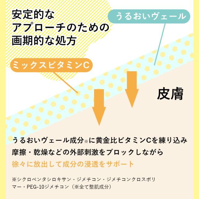 | 全成分 | シクロペンタシロキサン、ジパルミチン酸アスコルビル、ジメチコン、ジメチコンクロスポリマー、テトラヘキシルデカン酸アスコルビル、PEG-10ジメチコン、3-O-セチルアスコルビン酸、パルミチン酸アスコルビルリン酸3Na、アスコルビン酸、DNA-Na、ヒトサイタイホウォートンゼリー間葉幹細胞エクソソーム、トコフェロール、オレンジ果皮油、水、塩化Na、香料、フェノキシエタノール(※フェノキシエタノールは原料のキャリーオーバー分です) |