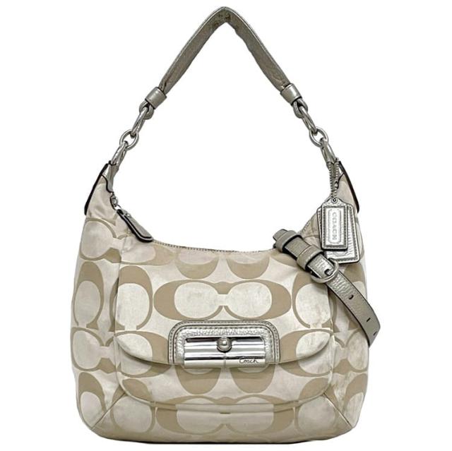 コーチ 2way バッグ ec-23524 ベージュ シグネチャー 16805 ショルダーバッグ キャンバス レザー 中古 COACH クロスボディ 肩掛け ファスナー 定番 人気 女性 レディース 鞄 お洒落 エレガント ロゴ ロゴ柄 通勤 通学 仕事 ビジネス ブランド 本物 鑑定済み