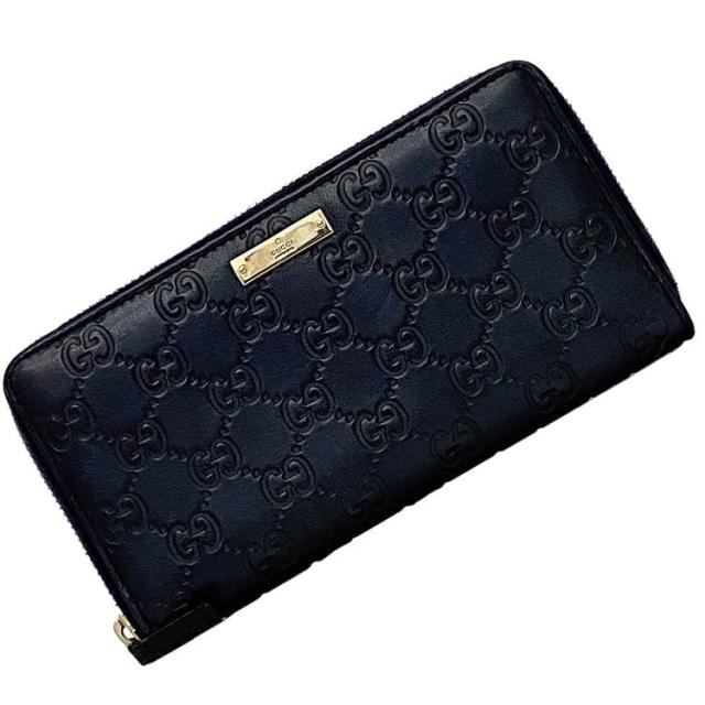 グッチ ラウンドファスナー 長財布 ec-23550 ネイビー シマライン 307980 財布 レザー 中古 2067 GUCCI GG シマ ファスナー ジップアラウンド 紺 シマ エンボスロゴ 総柄 メンズ レディース 定番 人気 ロゴプレート ゴールド金具 ブランド 本物 鑑定済み