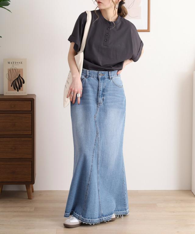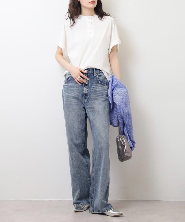 シンプルにカーブデニムパンツ(ジーンズ)やイージーパンツ、ワイドパンツに合わせるカジュアルスタイルも◎