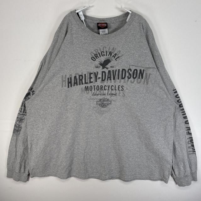 古着 ハーレーダビッドソン HARLEY DAVIDSON 長袖Tシャツ 両面 袖 プリント スカル 企業 大きいサイズ 3XL グレー メンズ