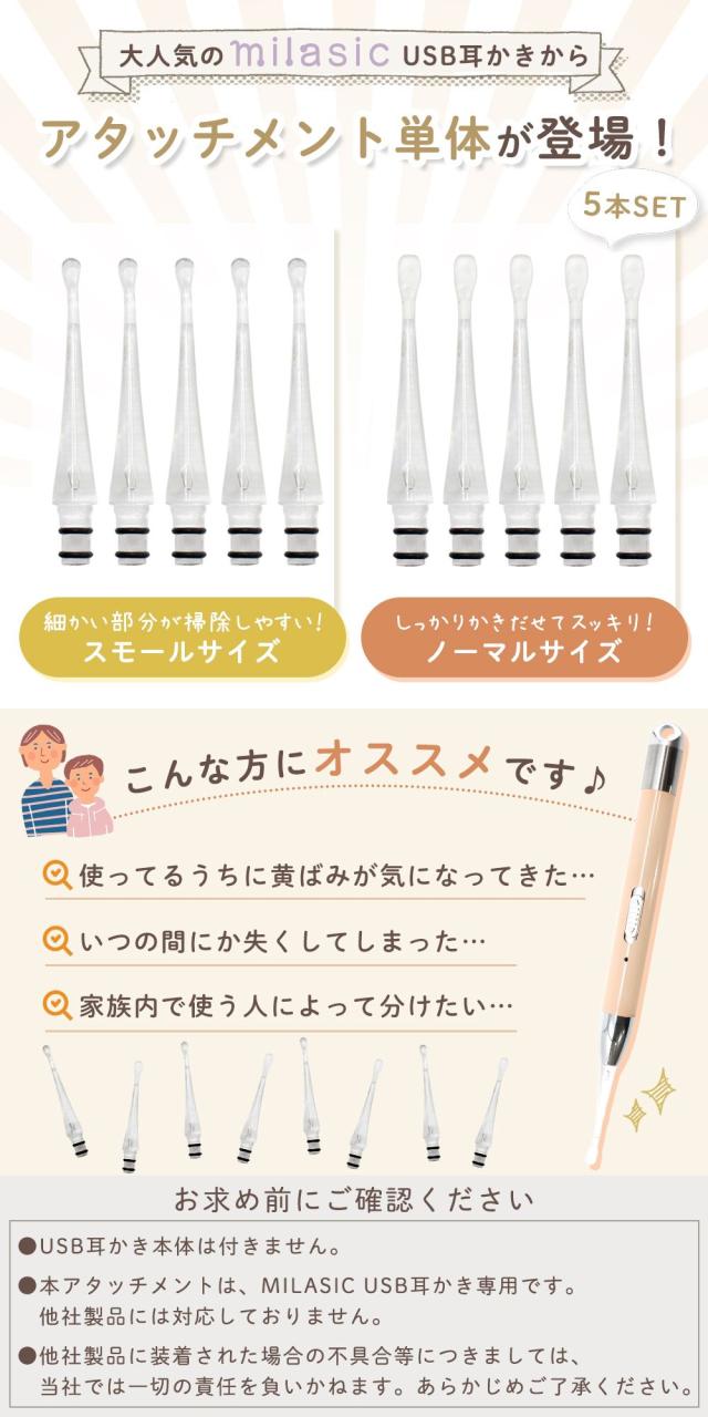 【MILASIC公式】 USB耳かきのアタッチメントのみ 耳かき用パーツ 耳掃除 イヤークリーナー みみかき USB充電式 光る耳かき LED ライト 付き ピンセット USB 充電式 耳かき 照明付き 介護耳かき 耳掻き 便利グッズ 子ども用 子供 電気 介護 日用品 LEDライト LED耳かき