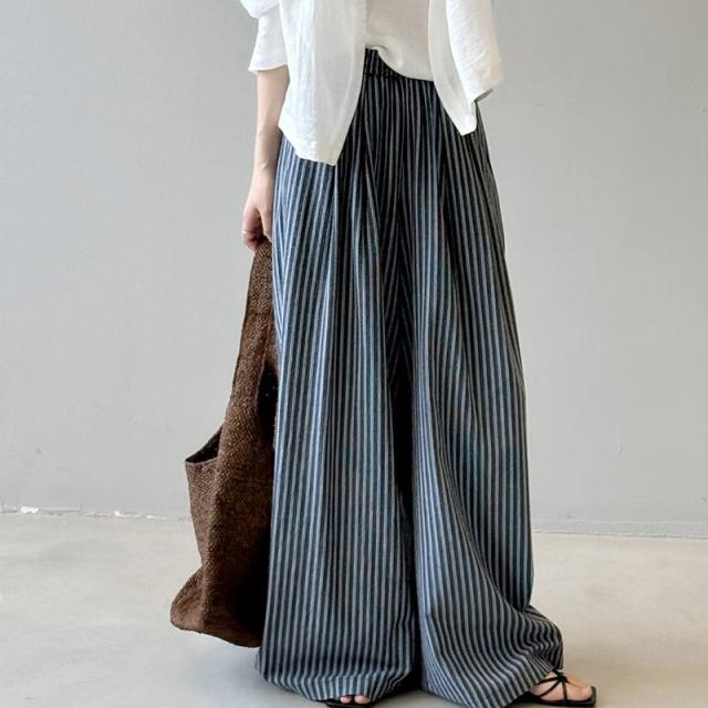 上品なモダンな雰囲気のストライプワイドパンツ。