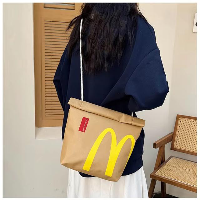 訳あり セール 送料無料 ミニバッグ ショルダーバッグ 限定版 ななめがけ ポーチ サコッシュ ポシェット バーガーショップ 紙袋風 可愛い 食いしん坊 ファーストフード ジャンクフード カジュアル おしゃれ ロゴ パロディ M おもしろ エモい 個性的 ウーバー フライドポテト