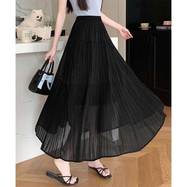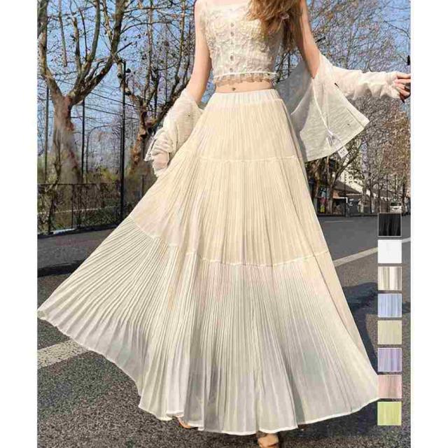 シフォンスカート ロングプリーツスカート