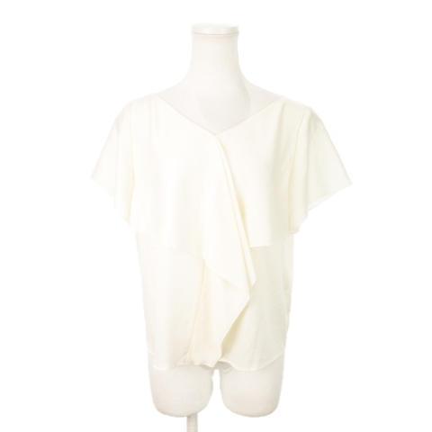 【中古】ユナイテッドアローズ ラッフルカラーブラウス Vネック プルオーバー 半袖 フレアスリーブ 白