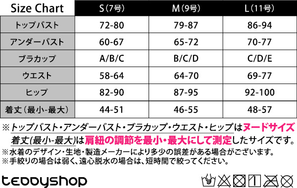 ※トップバスト・アンダーバスト・ブラカップ・ウエスト・ヒップはヌードサイズ、