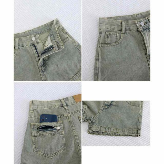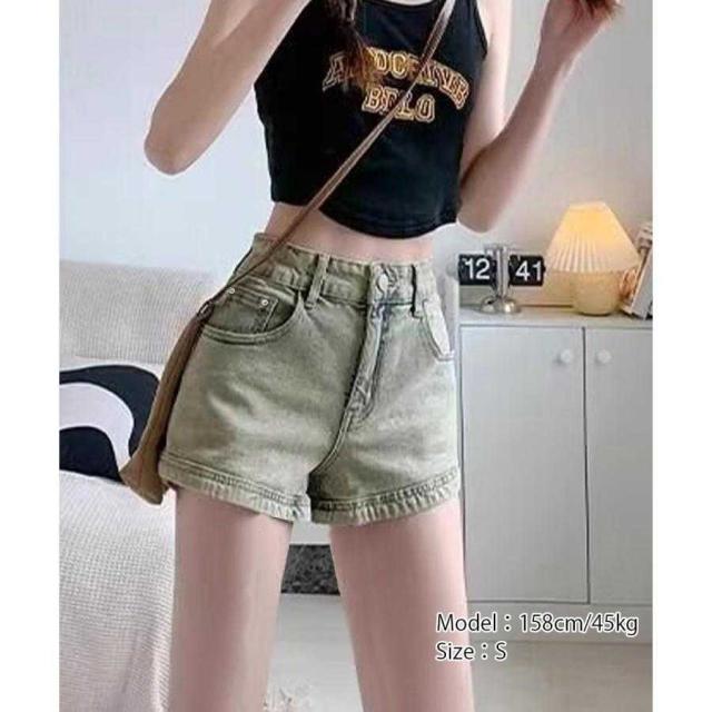ヴィンテージ風デニムショーパン 美脚脚長ジーパン お洒落アメカジホットパンツ 細見え美尻ジーンズ レトロ短パンオルチャン
