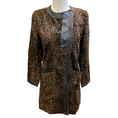 【中古】ミュラー オブ ヨシオクボ ノーカラー コート レオパード柄 牛革 肩パッド入 36 約Sサイズ 茶 レディース