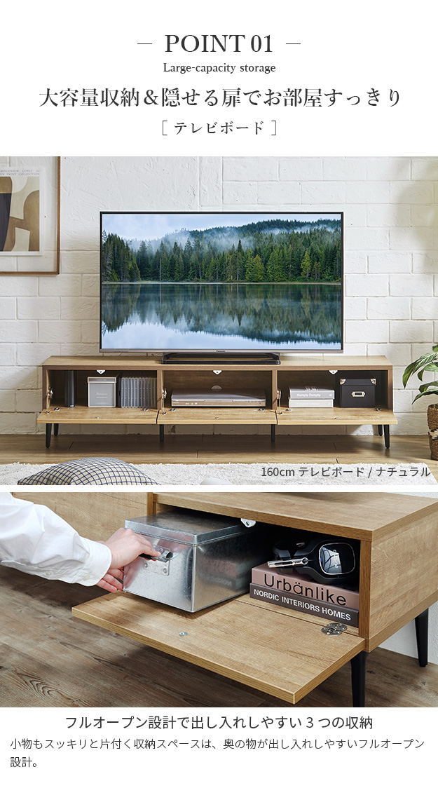 160cmテレビボード +120cmサイドボード >板扉 >ガラス扉 |