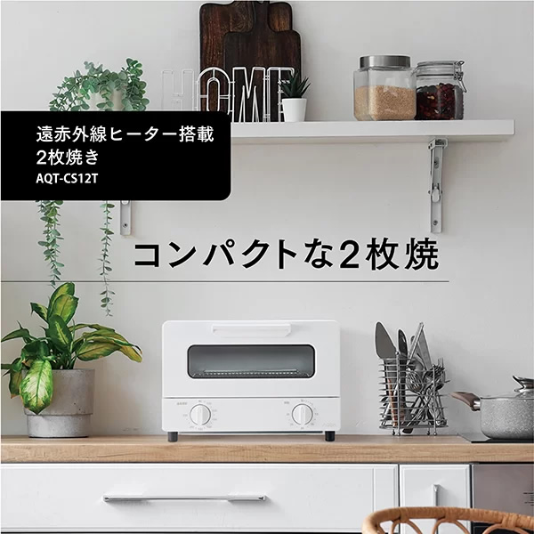 オーブントースター AQUA アクア ホワイト 遠赤外線ヒーター2枚焼きトースター AQT-CS12T-W
