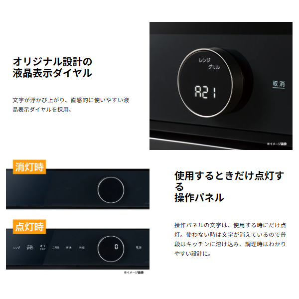 操作パネルの文字は、使用する時にだけ点灯。使わない時は文字が消えているので普段はキッチンに溶け込み、調理時はわかりやすい設計に。