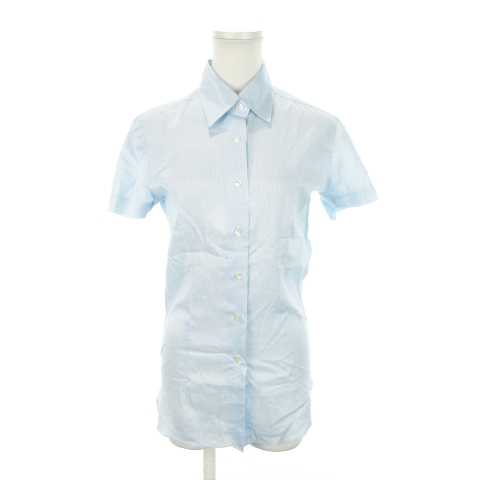 【中古】フィナモレ finamore 半袖シャツ シルク 絹 ラウンドカット ロゴ刺繍 ストライプ 40 S 青 ブルー