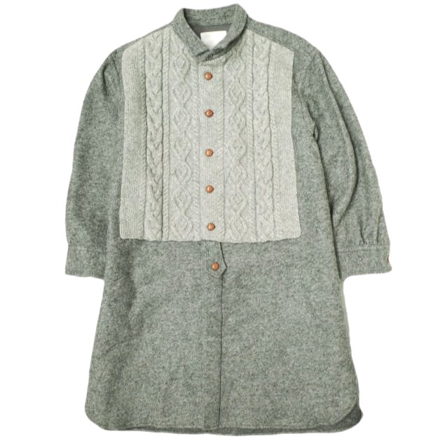 ウールボディのシャツワンピースをベースに、フロントにケーブルニットをドッキングさせています。