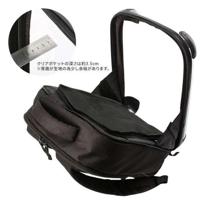 クリアポケット背面は缶バッジなどが取り付けやすいメッシュ生地を採用。