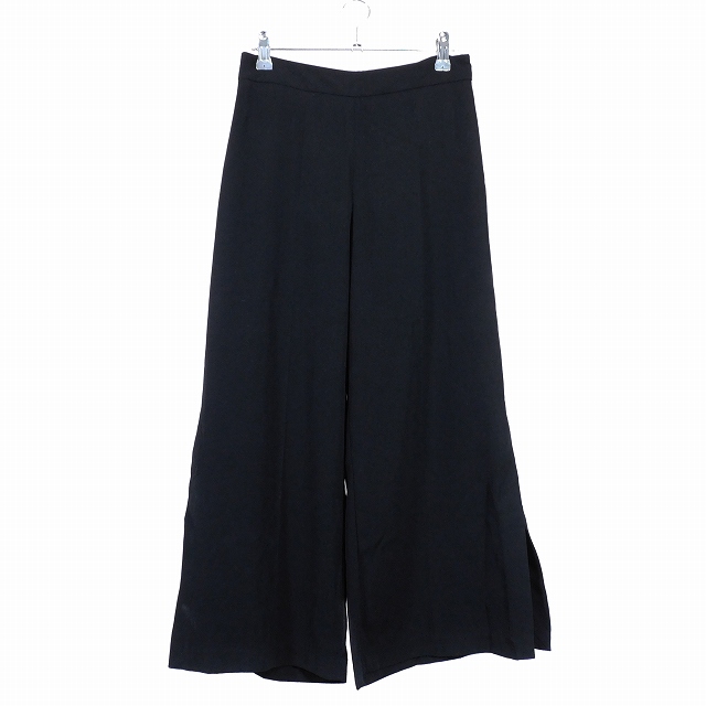 【中古】ザラ ベーシック ZARA BASIC ワイドパンツ スリット センタープレス サイドファスナー 無地 XS 黒 レディース