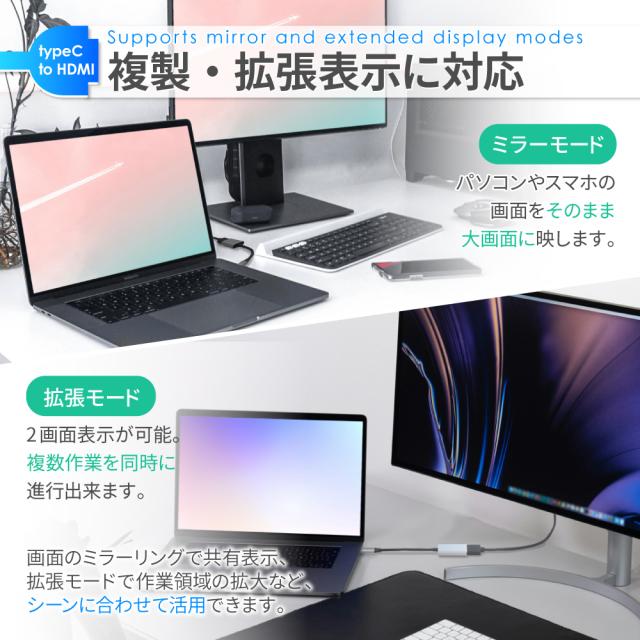 変換アダプタ アダプター アダプタ 変換器 HDMI hdmi TypeC タイプ-C TYPEC テレビ 接続 iPhone iphone iPad スマホ タブレット ノートパソコン PC Apple MacBook Mac Book windows TV モニター ディスプレイ ゲーミングモニター TV プロジェクター 4K対応 取り付け簡単 差し込むだけ 薄型 軽量 コンパクト デザイン 持ち運び 動画 映像 コード 投影 ミラーリング 充電 データ転送 在宅ワーク テレワーク zoom 遠隔授業 テレビ会議 リモートワーク 大画面 オンライン飲み会 リモート授業 おしゃれ オシャレ