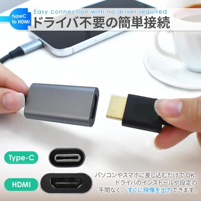Type-C HDMI 変換アダプタ アダプター コネクタ タイプC 高速転送 4K高画質 4K 30Hz 4K@30Hz オス メス iPhone アイフォン android アンドロイド iPad タブレット MacBook windows テレビ 接続 モニター ミラーリング
